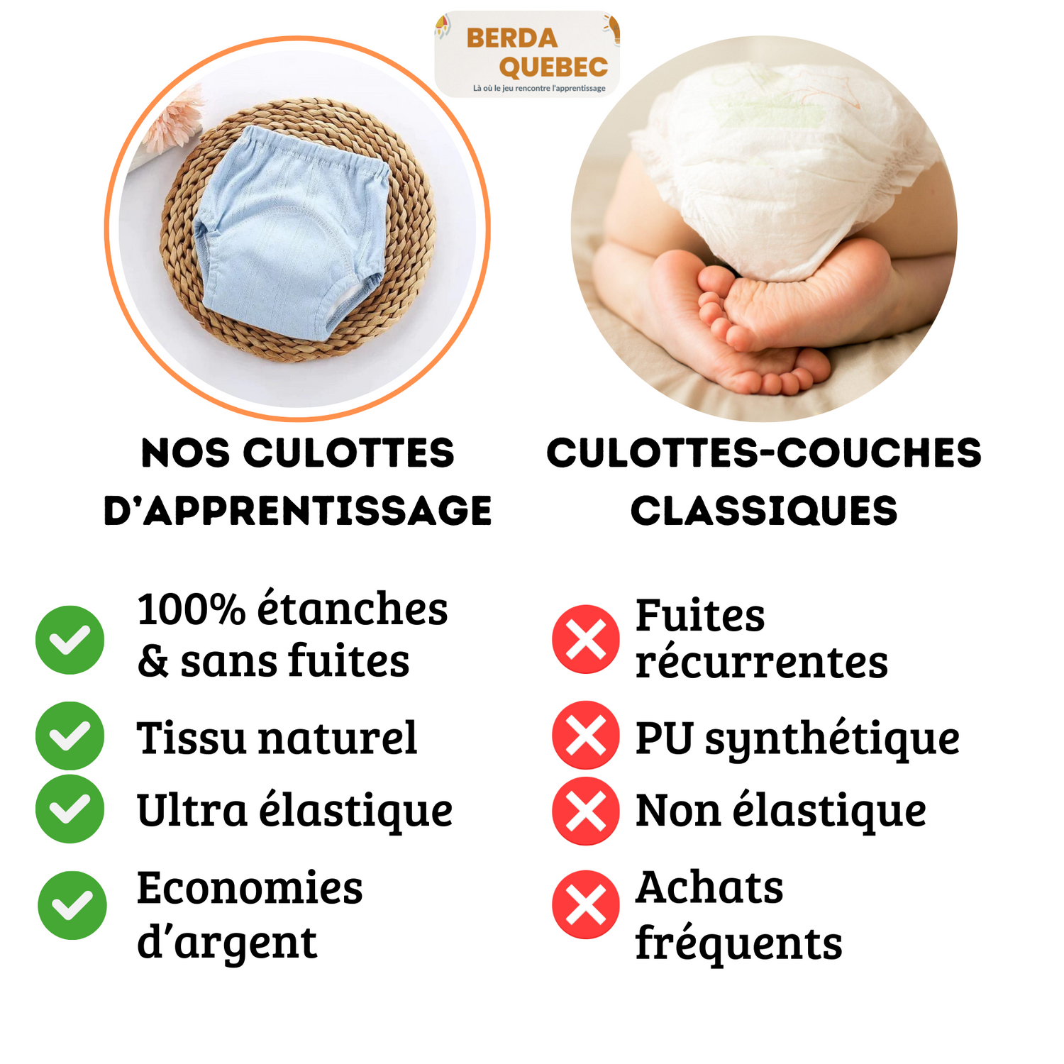 Découvrez pourquoi nos culottes sont les meilleures sur le marché ; incomparables par rapport aux culottes couches classiques.