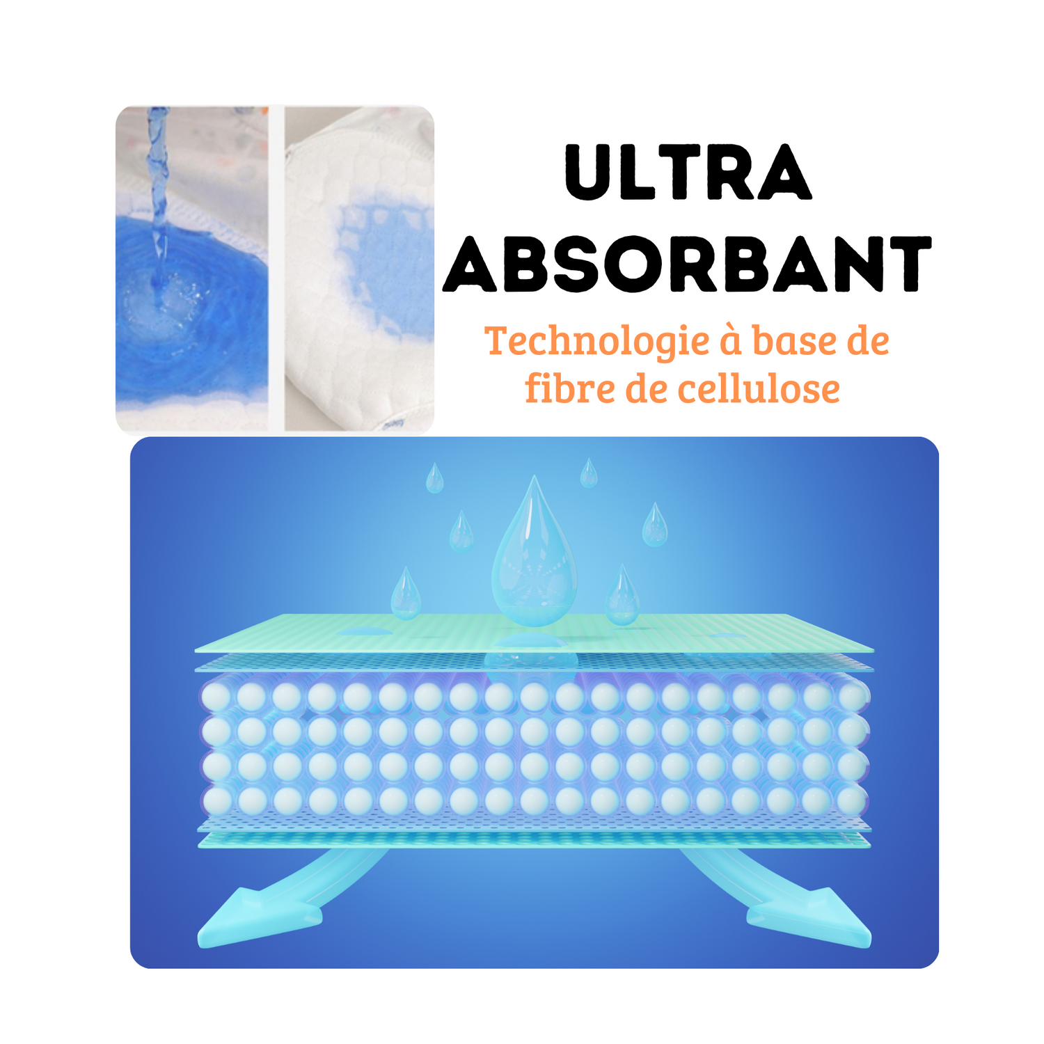 Nos couches ultra absorbantes sont fabriquées en fibre de cellulose, offrant une protection exceptionnelle contre les fuites. Conçues pour le confort de votre bébé, elles gardent la peau sèche et protégée tout au long de la journée. Idéales pour une absorption maximale, elles assurent une tranquillité d'esprit aux parents.