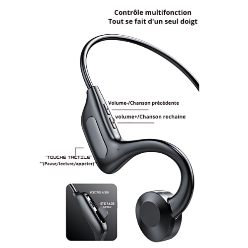 Profitez de chaque instant avec nos écouteurs à conduction osseuse, parfaits pour toutes vos activités. Que vous soyez en train de conduire, de courir, de vous entraîner ou de vous détendre, ces écouteurs offrent un son clair tout en vous permettant de rester conscient de votre environnement.