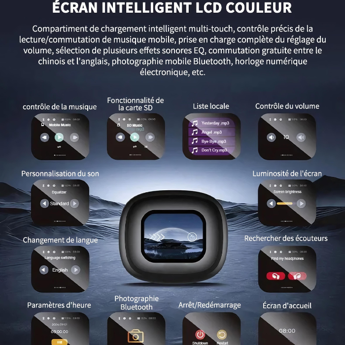 Les commandes tactiles permettent de gérer la musique, les appels, et le volume.