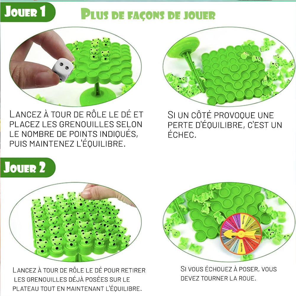 ÉquiJeu™ peut être joué par 1 à 4 joueurs. Il est parfait pour des moments en famille, où chacun peut participer et s’entraider pour réussir les défis d’équilibre.