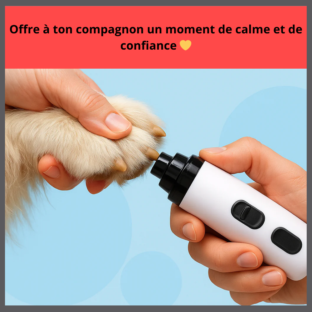 Offre à ton compagnon un moment de calme et de confiance 💛 GrifCalm™ lime les griffes sans bruit, sans stress et sans douleur — pour des pattes soignées, un animal détendu et un lien encore plus fort 🐶✨