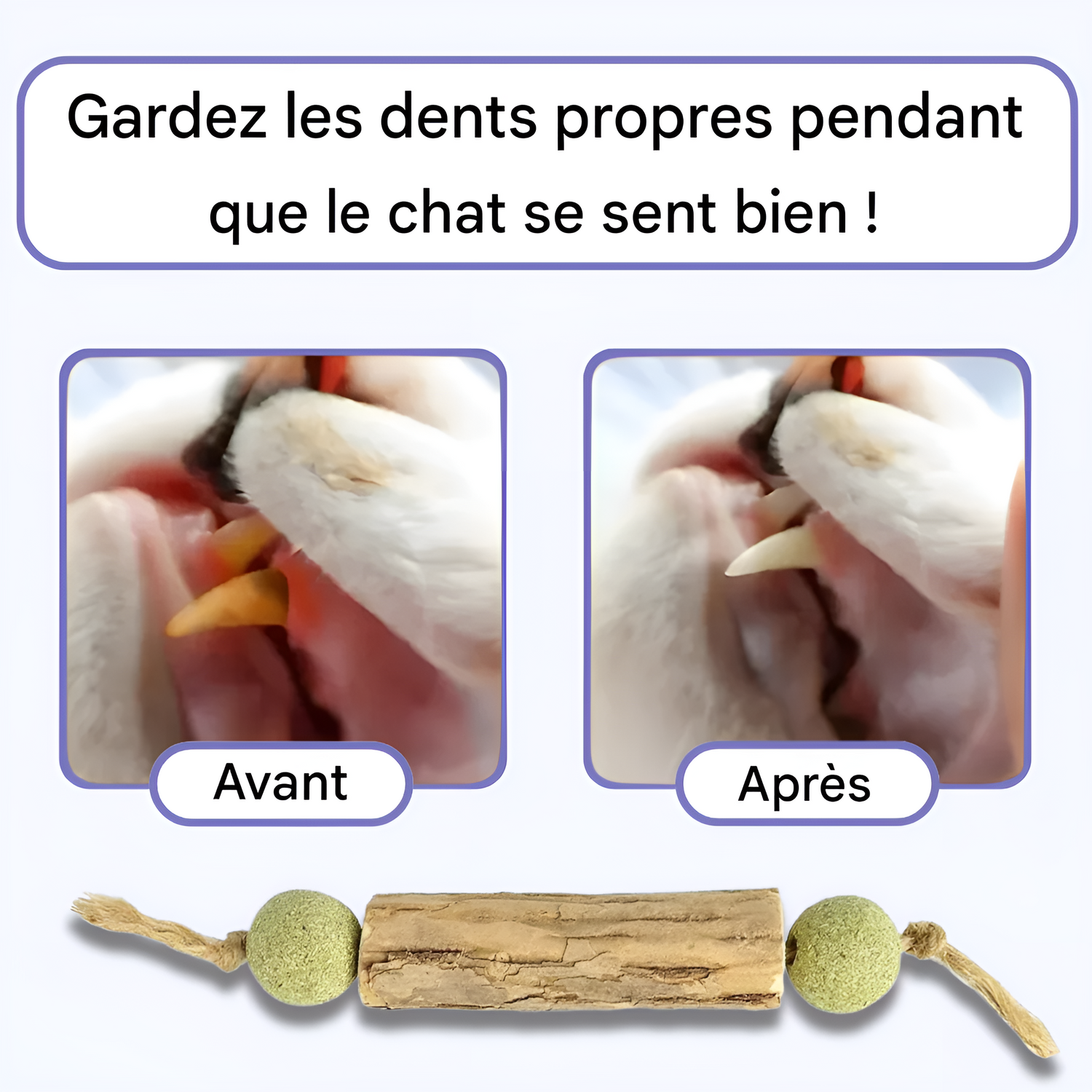 Pas de stress, pas de brosse compliquée — juste un chat heureux, actif, avec une haleine fraîche et des dents en meilleure santé.