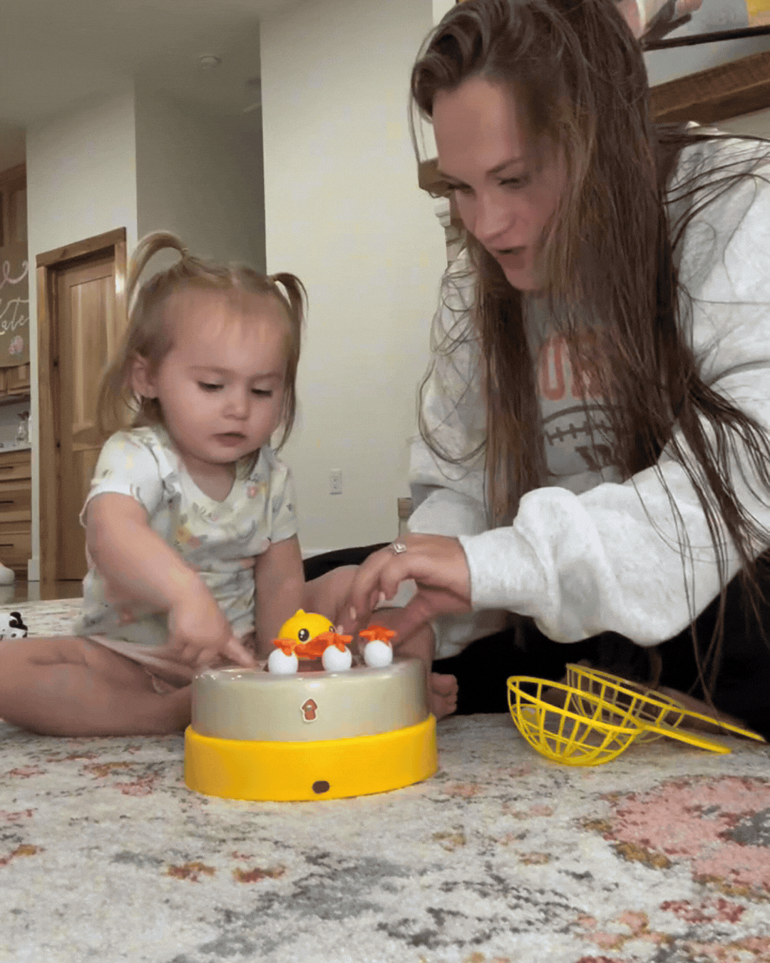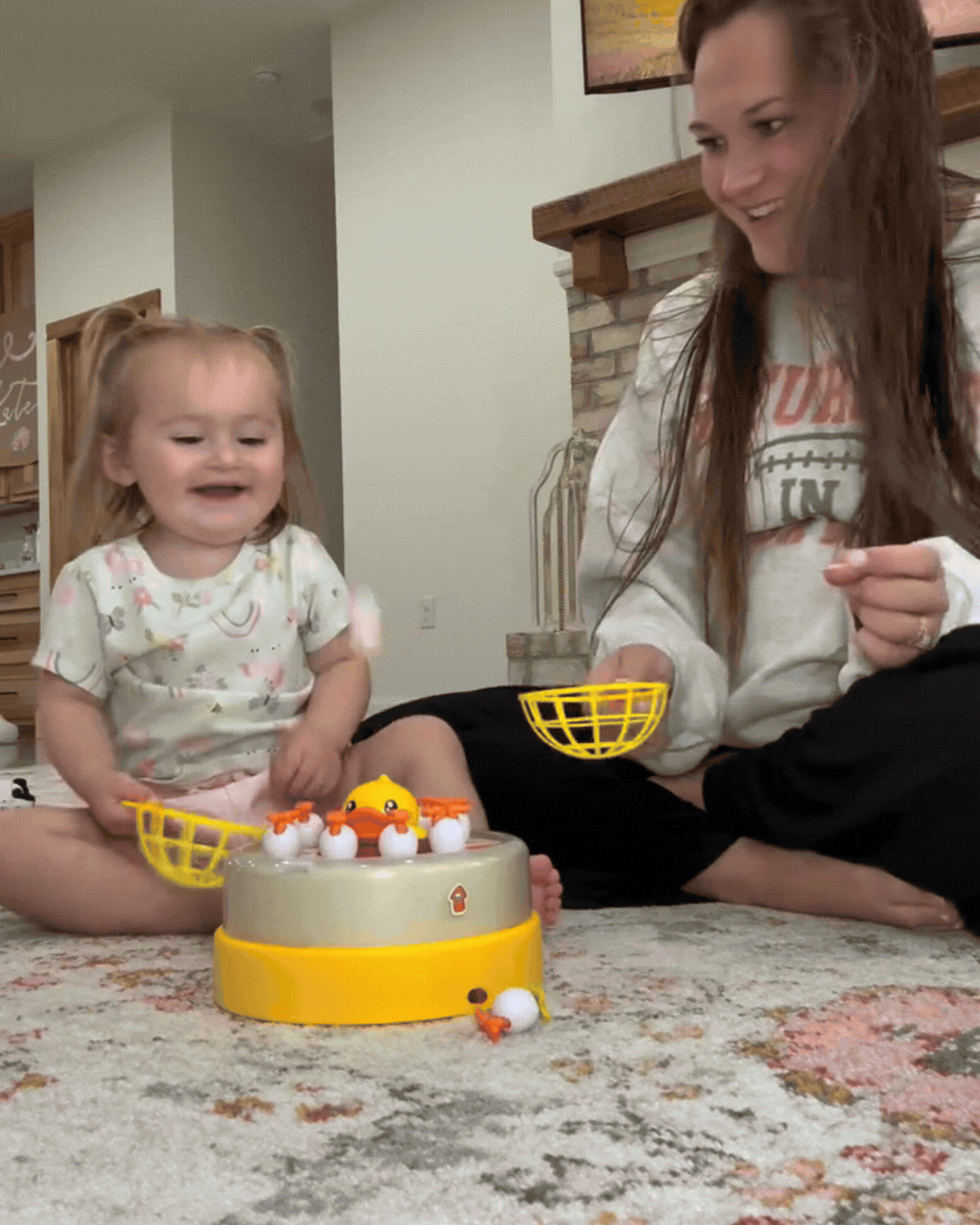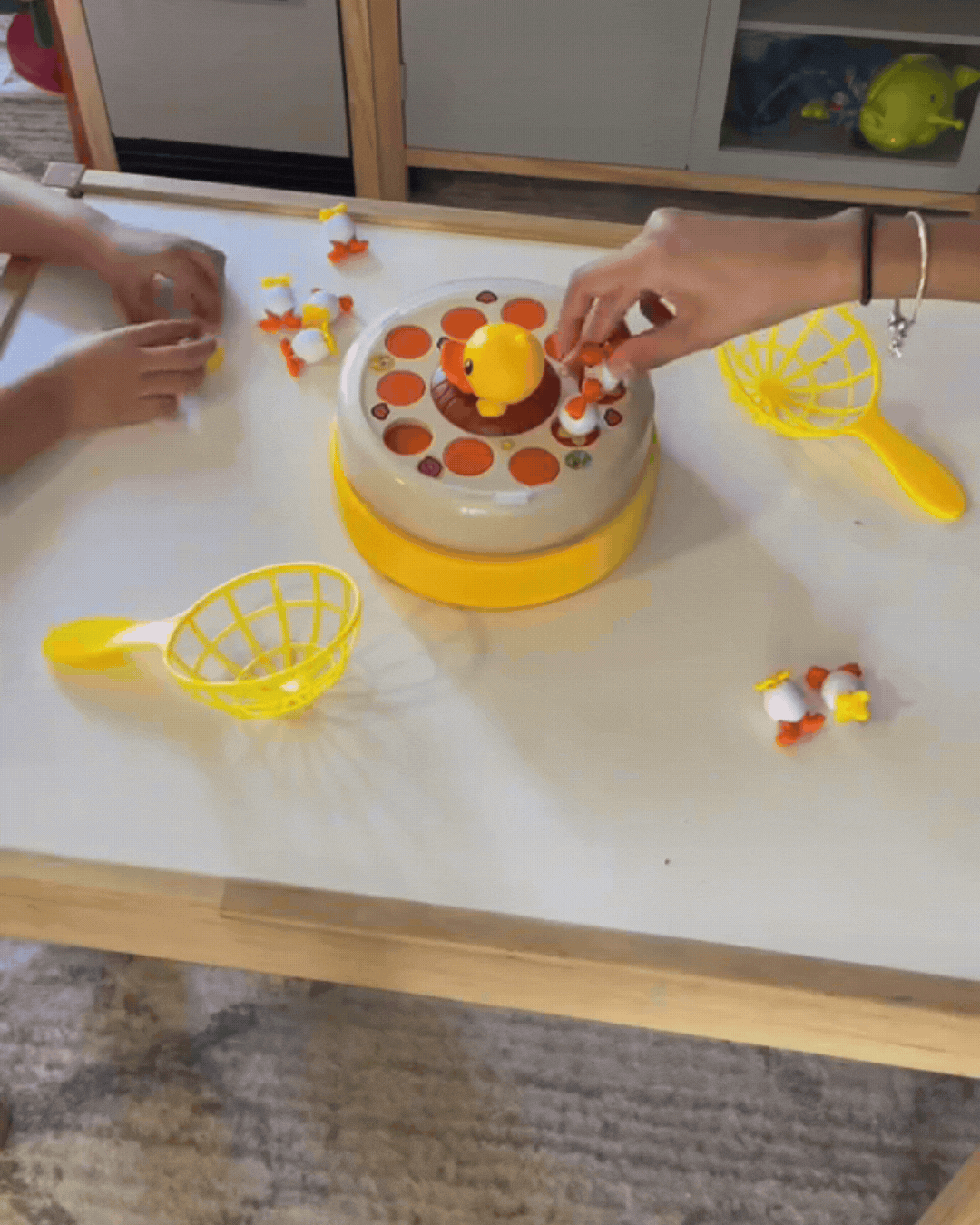 Regardez vos enfants rire et jouer pendant que les adorables canards jaunes rebondissent autour du plateau tournant ! Ce jeu passionnant est conçu pour susciter la joie et divertir les petits pendant qu'ils essaient d'attraper les canards en plein vol.