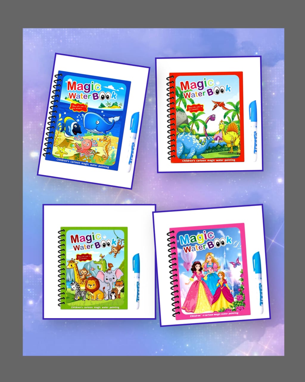 Offrez un moment de calme, de créativité et de découverte. Ce pack de 4 livres magiques à l’eau transforme chaque instant en aventure colorée… sans le moindre dégât !