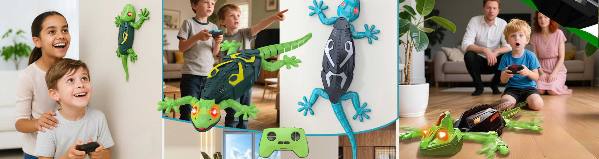 Avec LizaClimb™, vos petits vivent un moment magique : un lézard qui grimpe VRAIMENT aux murs, se déplace partout et réagit à la télécommande. Les enfants rient, crient de surprise et n’en reviennent pas de voir un jouet qui bouge comme un vrai