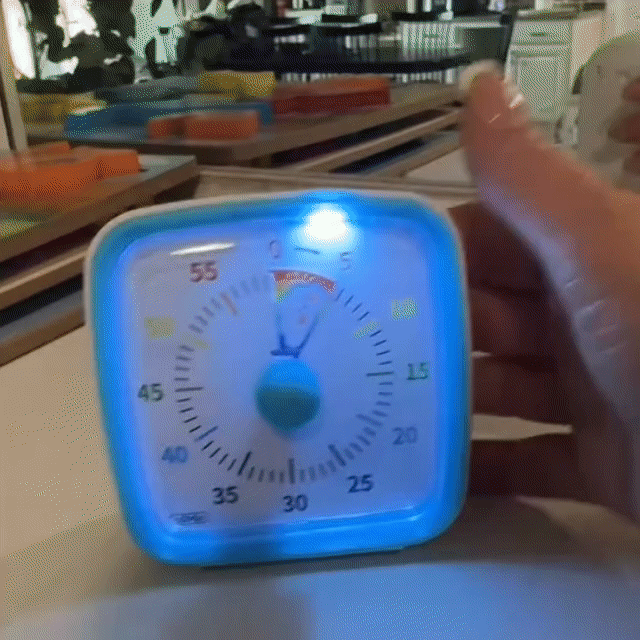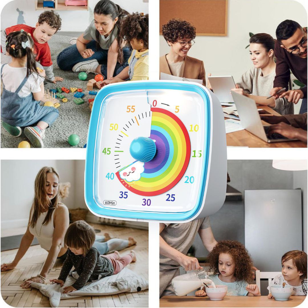 Le minuteur utilise des repères visuels colorés pour indiquer le temps restant, ce qui aide les enfants à visualiser et à comprendre le passage du temps. Il est facile à utiliser et s’adapte à différentes activités.