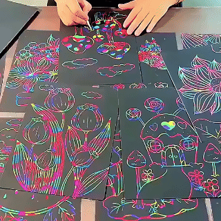 Fini les crayons qui tachent ou la peinture renversée. Ce carnet se gratte doucement avec le stylet en bois, sans aucun dégât. Les parents apprécient la tranquillité, les enfants adorent la surprise à chaque trait.