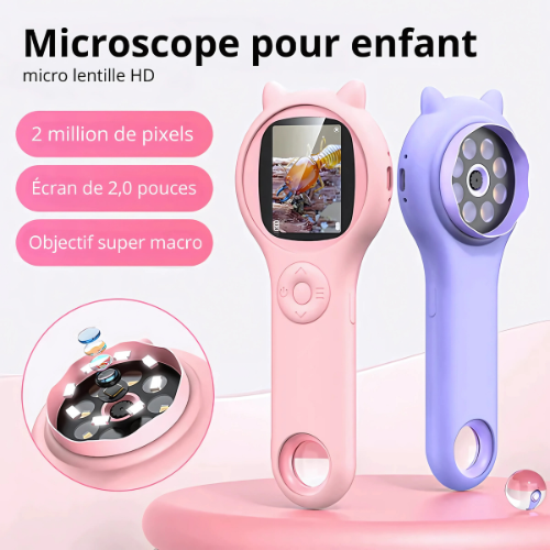 Offrez à votre enfant une expérience d'exploration unique avec ce microscope pour enfant. Doté d'une lentille super macro et d'un écran HD de 2,0 pouces, il permet d'observer les détails fascinants de la nature, tout en rendant l'apprentissage amusant et captivant.